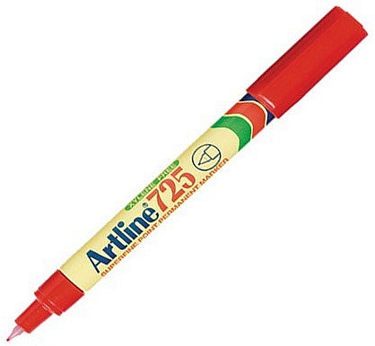 Artline EK-725 on punainen huopakynä, joka tarjoaa kestävän ja pysyvän jäljen. Kärjen paksuus on super fine 0,4 mm, sopii tarkkaan kirjoittamiseen ja piirtämiseen.
