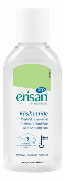 Erisan käsihuuhde 100ml taskupullo on etanolipohjainen desinfiointiaine, joka on suunniteltu erityisesti toistuvaan käyttöön ja herkälle iholle. Tämä käsihuuhde täyttää useat eurooppalaiset standardit, kuten EN 1500, EN 12791, EN 14476, EN 13727 ja EN 13624, mikä takaa sen tehokkuuden ja luotettavuuden. Tuote on kehitetty erityisesti alueille, joissa vaaditaan korkeatasoista käsihygieniaa, kuten terveydenhuollossa, elintarviketeollisuudessa ja muissa hygieniaa vaativissa ympäristöissä. Kätevä 100 ml:n taskupullo mahdollistaa helpon ja nopean käytön missä tahansa, tarjoten näin tehokkaan suojan bakteereja ja viruksia vastaan. Erisan käsihuuhde on ihanteellinen valinta päivittäiseen käyttöön, tarjoten sekä suojaa että hoitoa käsillesi.