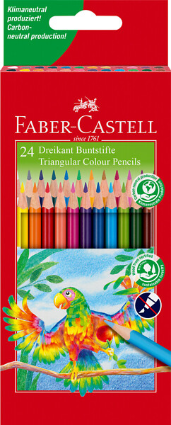 Faber-Castell Kids värikynät ovat suunniteltu erityisesti lapsille. Niiden ergonominen kolmikulmainen muotoilu tekee piirtämisestä helppoa ja mukavaa. Värikynien kirkkaat värit levittyvät sujuvasti paperille ja ne ovat helppo pestä pois useimmista tekstiileistä, mikä tekee niistä ihanteellisen valinnan aktiivisille lapsille. Kynissä on nimikenttä, joten ne on helppo tunnistaa ja pitää järjestyksessä. Kynien lyijy on kestävä, kiitos erikoisvalmistusmenetelmän, joka tekee siitä murtumattoman. Kynien pinta on käsitelty ympäristöystävällisellä vesipohjaisella lakalla, ja käytetty puu on pääosin FSC-sertifioitua, mikä takaa vastuullisen metsänhoidon. Pakkaus sisältää 24 eri väristä kynää, jotka tarjoavat laajan valikoiman värisävyjä taiteiluun ja luovuuden ilmaisuun.