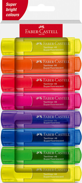 Faber-Castell TL 46 SF korostuskynäsarja tarjoaa kahdeksan eri väristä kynää, jotka sopivat erinomaisesti niin opiskeluun, toimistotyöhön kuin luovaan kirjoittamiseenkin. Sarja sisältää kirkkaat ja helposti erottuvat värit, jotka tekevät tekstin korostamisesta tehokasta ja visuaalisesti miellyttävää. Kynien laadukas muste levittyy tasaisesti eikä tahraa paperia, mikä tekee niistä ihanteelliset pitkäkestoiseen käyttöön. Ergonomisesti muotoillut kynät istuvat mukavasti käteen, vähentäen väsymystä pitkäaikaisessa käytössä. Faber-Castellin korostuskynät ovat vesiliukoisia, joten ne ovat turvallisia ja helppoja käyttää erilaisilla papereilla. Tämä monipuolinen sarja on välttämätön työkalu jokaiselle, joka arvostaa korkealaatuisia kirjoitusvälineitä.