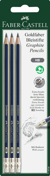 Faber-Castell Goldfaber -lyijykynäpakkaus sisältää kolme korkealaatuista HB-kovuusasteen lyijykynää, jotka on varustettu käytännöllisellä kumipäällä. Nämä kynät takaavat erinomaisen kirjoitus- ja piirustuskokemuksen niin toimistossa, koulussa kuin vapaa-ajallakin. Lyijykynien HB-kovuusaste soveltuu ihanteellisesti sekä kirjoittamiseen että tekniseen piirtämiseen, tarjoten selkeän jäljen ilman voimakasta painamista. Kynät on pakattu kätevään blisterikorttiin, mikä tekee niistä helpon valita ja säilyttää. Faber-Castellin laatu näkyy jokaisessa yksityiskohdassa, varmistaen pitkäkestoisen käyttökokemuksen ja tasaisen suorituskyvyn.