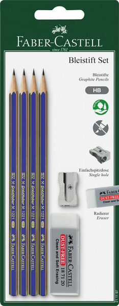 Faber-Castell Goldfaber lyijykynäsetti on erinomainen valinta niin opiskelijoille, ammattilaisille kuin harrastajillekin. Tämä setti sisältää neljä HB-kovuuden lyijykynää, jotka takaavat tasaisen ja kestävän jäljen kirjoittamiseen ja piirtämiseen. Lyijykynien laadukas valmistusmateriaali varmistaa miellyttävän kirjoituskokemuksen ilman katkeamista. Settiin kuuluu myös kätevä teroitin, joka pitää kynät terävinä ja valmiina käyttöön, sekä korkealaatuinen pyyhekumi, joka poistaa tehokkaasti kirjoitusvirheet ilman paperin vahingoittamista. Faber-Castellin lyijykynäsetti on täydellinen työkalu luovuuden ilmaisuun ja päivittäiseen käyttöön, yhdistäen perinteisen saksalaisen laadun ja innovatiivisen suunnittelun.
