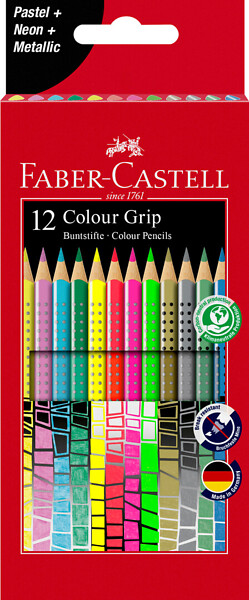 Faber-Castell Colour Grip -värikynät ovat erinomainen valinta vähän isommille lapsille, jotka nauttivat piirtämisestä ja maalaamisesta. Nämä kolmikulmaiset, ergonomisesti muotoillut kynät on suunniteltu mukavuutta silmällä pitäen, ja niiden patentoitu soft-grip otepinta varmistaa, että käsi ei väsy pitkässäkään käytössä. Värikynien rikas pigmenttipitoisuus takaa kirkkaat ja eloisat värit, jotka herättävät piirustukset eloon. Vesiliukoisuus lisää luovuutta mahdollistamalla vesiväritehosteiden luomisen; piirrä kuva, lisää vettä ja sivellintä, ja katso kuinka työsi muuttuu. Kokeile kyniä myös tummalla paperilla saadaksesi aikaan ainutlaatuisia vaikutelmia. Pakkaus sisältää 12 värikynää.