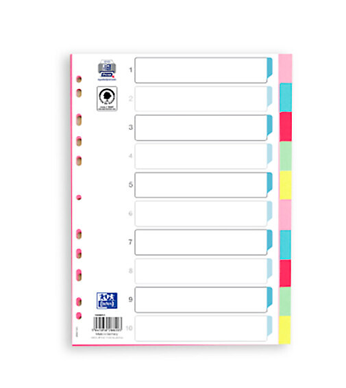 Tämä Oxfordin monivärinen A4-hakemisto on erinomainen valinta paperidokumenttien tehokkaaseen arkistointiin ja säilytykseen. Hakemisto on valmistettu kestävästä 160 gramman kartongista, joka takaa pitkäikäisyyden ja suojan asiakirjoillesi. Kymmenosainen jaotus helpottaa asiakirjojen organisointia ja nopeaa löytämistä, mikä tekee tästä hakemistosta ihanteellisen työkalun niin toimistoon kuin kotikäyttöönkin. Värikkäät välilehdet eivät ainoastaan piristä toimistoympäristöä, vaan myös helpottavat eri osioiden erottamista toisistaan. Tämä hakemisto on suunniteltu standardikokoisille A4-papereille, ja se sopii useimpiin kansioihin ja arkistointijärjestelmiin. Oxfordin laadukas hakemisto on luotettava valinta, joka auttaa pitämään paperit järjestyksessä ja helposti saatavilla.