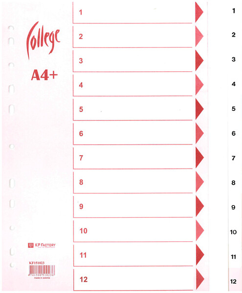 Tuotteesi Hakemisto A4+ leveä 1-12 muovi