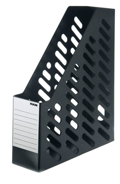 Lehtikotelo Han Klassik yhdistää klassisen tyylin ja modernin muotoilun, tarjoten tehokkaan ratkaisun paperidokumenttien järjestämiseen ja säilyttämiseen. Tämä musta lehtikotelo pitää tärkeät asiakirjat, luettelot, lehdet ja esitteet järjestyksessä ja helposti saatavilla. Kotelon korkea etureuna estää dokumenttien putoamisen ja sivujen reijitys mahdollistaa sisällön nopean tunnistamisen. Kotelot ovat nimikoitavissa itseliimautuvilla nimilapuilla, mikä tekee sisällön hallinnasta vieläkin vaivattomampaa. Kotelon mitat ovat 76x246x315 mm, leveys 70 mm ja etureunan korkeus 148 mm, mikä tekee siitä tilaa säästävän ja käytännöllisen vaihtoehdon mihin tahansa toimistoon.