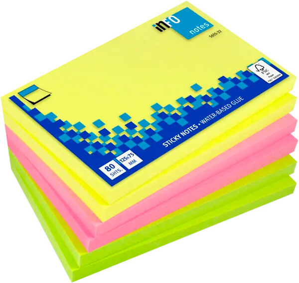 Info Notes Brilliant viestilaput ovat erinomainen valinta jokapäiväiseen käyttöön niin toimistossa kuin kotona. Kätevässä 125x75mm koossa olevat lappuset tulevat värikkäässä lajitelmassa, joka piristää muistiinpanoja ja tekee viestien jättämisestä hauskaa. Pakkaus sisältää kuusi lehtiötä, joissa kussakin on 80 lappua, yhteensä 480 lappua. Nämä itsekiinnittyvät muistilaput pysyvät hyvin paikoillaan, mutta ne on myös helppo irrottaa jättämättä jälkiä. Värikäs lajitelma auttaa organisoimaan tehtäviä ja muistutuksia visuaalisesti. Käytännöllinen ja monipuolinen valinta, joka tuo tehokkuutta päivittäisiin askareisiin.