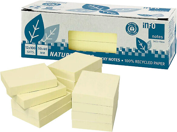 Info Notes eko viestilappu on ympäristötietoisen toimiston valinta. Nämä 50×40 mm kokoiset keltaiset viestilaput on valmistettu täysin kierrätetystä paperista, mikä tekee niistä erinomaisen vaihtoehdon kestävän kehityksen kannattajille. Jokainen pakkaus sisältää 12 lehtiötä, joissa kussakin on 100 lappua, yhteensä 1200 lappua per pakkaus. Tuotteelle on myönnetty arvostettu ”Blue Angel” -merkki, joka on maailman vanhin ympäristömerkki, tunnustuksena sen ympäristöystävällisyydestä. Nämä viestilaput ovat ihanteellisia muistiinpanoille, muistutuksille tai viestien jättämiseen työpaikalla, ja ne auttavat vähentämään ympäristövaikutuksia toimistotarvikkeiden käytössä.