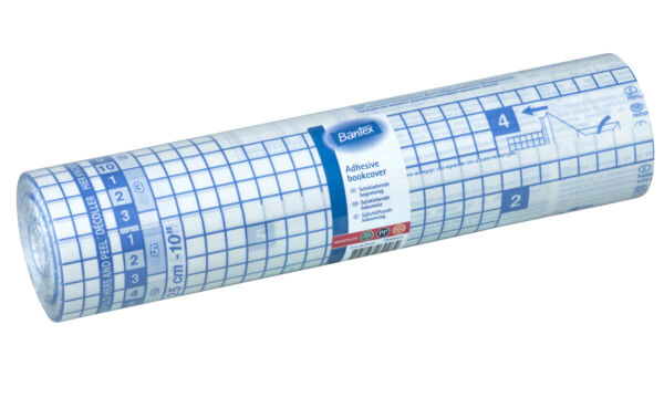 Bantex läpinäkyvä itseliimautuva kirjamuovi 30cm x 25m, 100 micronia, tarttumisviive