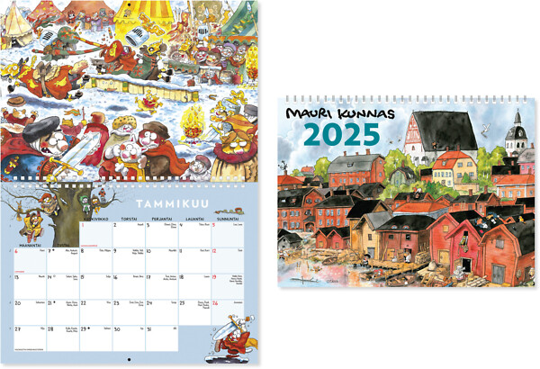 Tämä Mauri Kunnas seinäkalenteri vuodelle 2025 tarjoaa perinteisen ruudukkomallisen suunnittelun, joka tuo iloa ja väriä jokaiseen kuukauteen. Kalenterissa on jokaiselle kuukaudelle omistettu, vuodenaikaan sopiva kuvitus, joka on poimittu Mauri Kunnaksen suosituista lastenkirjoista. Avattuna kalenterin koko on 297 x 420 mm, ja se sisältää 12 kuukausiaukeamaa, joissa on merkitty sekä nimipäivät että juhlapäivät. Kalenteri on wiresidottu ja varustettu kätevällä ripustuslenkillä. Kaikki tekstit ovat suomeksi. Lisäksi kalenteri on painettu ympäristöystävälliselle FSC-sertifioidulle paperille, mikä tekee siitä kestävän valinnan ympäristötietoiselle kuluttajalle. Tämä seinäkalenteri ei ainoastaan auta pysymään järjestäytyneenä, vaan se myös piristää seinääsi koko vuoden ajan.