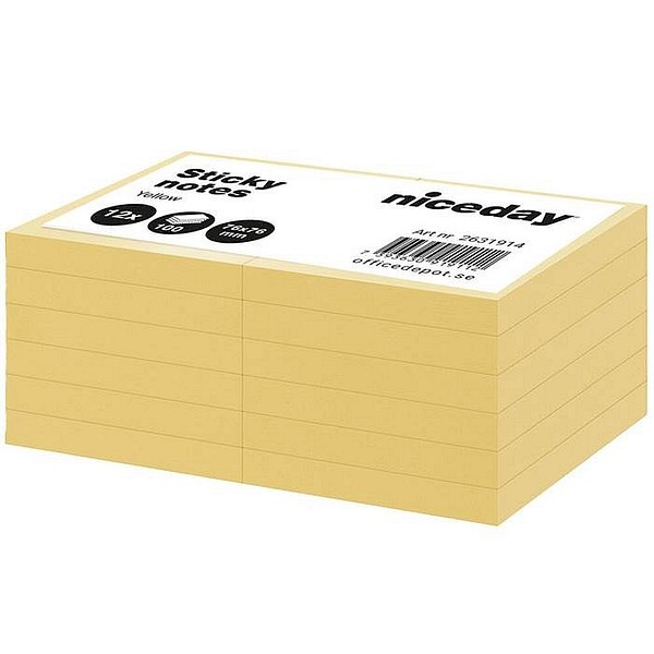 Niceday viestilaput ovat erinomainen valinta toimistoon tai kotiin. Kätevässä 76×76 mm koossa olevat keltaiset lappuset erottuvat helposti, joten ne ovat ihanteellisia muistutuksille, viesteille tai nopeille muistiinpanoille. Jokainen lehtiö sisältää 100 itsekiinnittyvää lappua, jotka tarttuvat kiinni useimpiin pintoihin ja irtoavat jälkiä jättämättä. Pakkaus sisältää 12 lehtiötä, yhteensä 1200 lappua, tarjoten erinomaisen varaston pitkäaikaiseen käyttöön. Niceday viestilaput ovat luotettava ja edullinen valinta päivittäiseen viestintään.