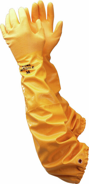 Nitriiliin kastettu kemikaalisuojakäsine. Soveltuu mm. erittäin märkiin tai öljyisiin tehtäviin, kun vaarana on myös käsivarsien kastuminen. Käyttöalueet esimerkiksi kemiallisten aineiden pakkaus, poraus- ja hiekkapuhallustyöt, kalastus sekä offshore -teollisuus. Käsineen pituus 65 cm ja paksuus 0,5 mm. Käsineellä on erinomainen kulutuksenkestävyys, kiinni ommeltu puuvilla/polyesteri-vuori ja se on anatomisesti muotoiltu. Ilmastoivat renkaat, myös ripustusta varten. Käsineen karkea pinta pitää hyvin. Käsine on antibakteerinen ja hajunmuodostusta ehkäisevä. Käsineen väri keltainen.