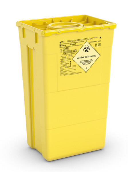 SC DUO Kliinisen jätteen astia on suunniteltu terveydenhuollon vaativiin tarpeisiin. Tämä 60 litran riskijäteastia on valmistettu kestävästä, iskunkestävästä ja viiltoja sekä pistoja läpäisemättömästä muovista, varmistaen turvallisen käytön. Astian keltainen väri, nestetiivis rakenne ja tuplakansi, jossa on kiinni liimautuva tiiviste, takaavat hygieenisen ja luotettavan jätteiden käsittelyn. Kannessa on suuri, pyöreä täyttöaukko, joka voidaan sulkea väliaikaisesti tai lopullisesti. Astia on pinottava täytenä, mikä säästää tilaa säilytyksessä ja kuljetuksessa. Tuote täyttää ISO 23907:2012 standardin vaatimukset ja on UN-tyyppihyväksytty. Mitat: leveys 40 cm, syvyys 30 cm, korkeus 65 cm. Astiassa on myös kestävät kahvat ja maksimitäyttömerkintä, mikä tekee siitä käytännöllisen ja helppokäyttöisen vaihtoehdon kliinisen jätteen hallintaan.