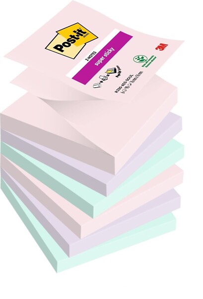 Post-it® Super Sticky Z-Notes -viestilaput pysyvät tiukemmin ja pidempään kuin tavalliset. Niiden tarttuvuus on kaksi kertaa parempi kuin alkuperäisten Post-it®-viestilappujen, joten viestisi menee varmasti perille. Itsekiinnittyvät Z-Notes-viestilaput pysyvät myös pystysuorilla ja tarttumista vastustavilla pinnoilla ja käyvät mainiosti esimerkiksi muistiinpanojen tekoon, kun puhut puhelimessa tai kätesi ovat muuten täynnä. Rauhallisen ja pehmeän sävyiset viestilaput ovat äärimmäisen kestäviä ja monikäyttöisiä, ja ne on suunniteltu kiinnittämään huomio viesteihisi. Valmistettu PEFC-sertifioidusta paperista, jonka raaka-aine on peräisin sertifioiduista, uusiutuvista ja vastuullisesti hoidetuista metsistä. Uusiutuvista raaka-aineista valmiste