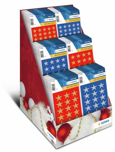 Pakkaus sisältää 6 erilaista pakkausta, joissa erilaisia viisisakaraisia tähtitarroja