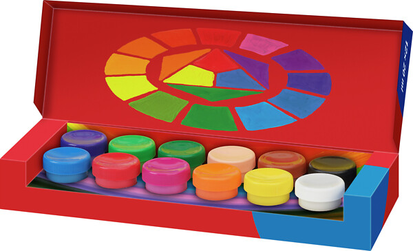 Värikylläiset tempera/guassivärit pienille taiteilijoille esimerkiksi päiväkoteihin tai kouluihin. Väreillä voi maalata lähes kaikille pinnoille ja pigmenttikylläiset värit eivät lohkea tai halkeile. Paketissa on kaksitoista väriä: violetti, vaaleanvihreä, vihreä, vaaleanpunainen, ruskea, musta, sininen, punainen, pinkki, oranssi, keltainen ja valkoinen. Maalipurkeissa on kierrekansi ja yhdessä purkissa on 20 ml väriä.