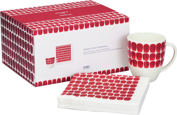Arabian Tuokio-lahjapakkaus on täydellinen valinta jokaiseen kotiin, tuo ripauksen klassista muotoilua ja käytännöllisyyttä arkeen. Tämä punainen muki ja servettipakkaus on suunniteltu kestämään arjen haasteet: se on konepesun-, pakkasen-, uunin- ja mikronkestävä, mikä tekee siitä erittäin monikäyttöisen. Muki on valmistettu korkealaatuisesta keramiikasta, joka kestää vuosien käytön. Sen ajaton muotoilu ja lämmin punainen väri tuovat pöytään sekä tyyliä että toimivuutta. Pakkaus sisältää kauniisti kuvioituja servettejä, jotka täydentävät kattauksen. Tämä sesonkituote on ihanteellinen lahjaidea, joka ilahduttaa niin juhlassa kuin arjessakin.