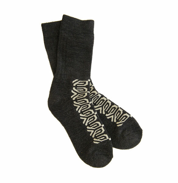 Ihanat Miiko Louhi-villasukat tarjoavat ylellistä mukavuutta ja lämpöä jokaiseen päivään. Nämä sukat on valmistettu laadukkaasta merinovillasekoitteesta, joka sisältää 60% merinovillaa, 20% polyamidia, 15% polypropyleeniä ja 5% elastaania, yhdistäen kestävyyden ja joustavuuden. Merinovillan ansiosta sukat ovat erittäin pehmeät, kevyet ja lämpimät, sopien täydellisesti niin rentoihin koti-iltoihin kuin aktiiviseen ulkoiluunkin talvisäällä. Sukkien musta-beige värimaailma ja tyylikäs graafinen Louhi-kuvio tekevät niistä sekä visuaalisesti että käytännöllisesti viehättävän valinnan. Valmistettu Suomessa, nämä villasukat ovat ihanteellinen lahjaidea tai henkilökohtainen hemmottelutuote kylmiin kuukausiin.